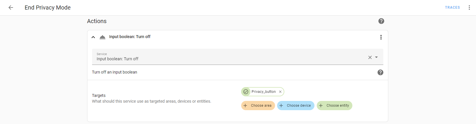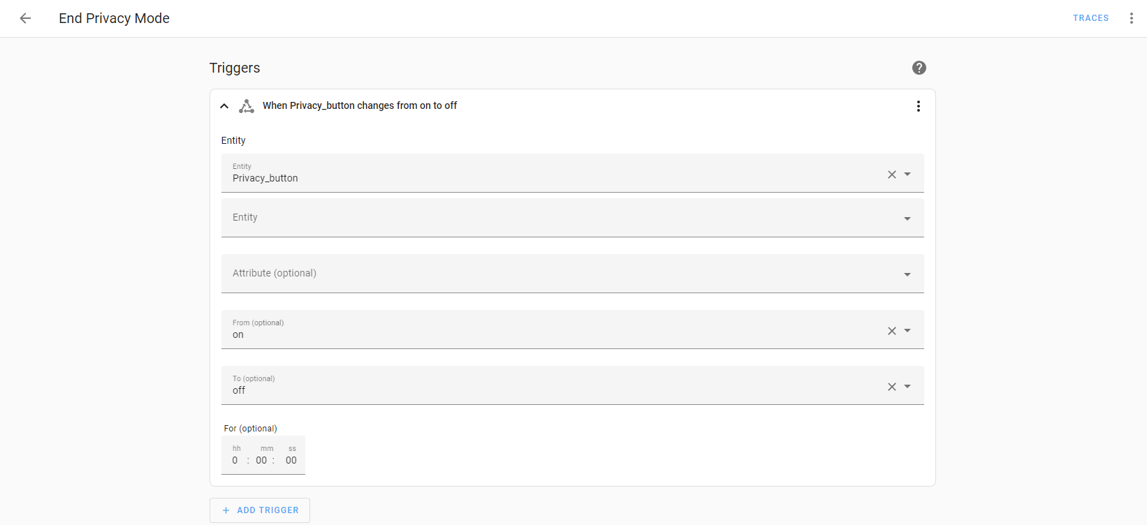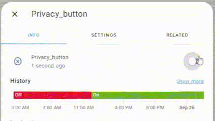 We will use this as a virtual button within Hassio, to know if the privacy mode is switched on or off, and also to be able to monitor when it is being used.